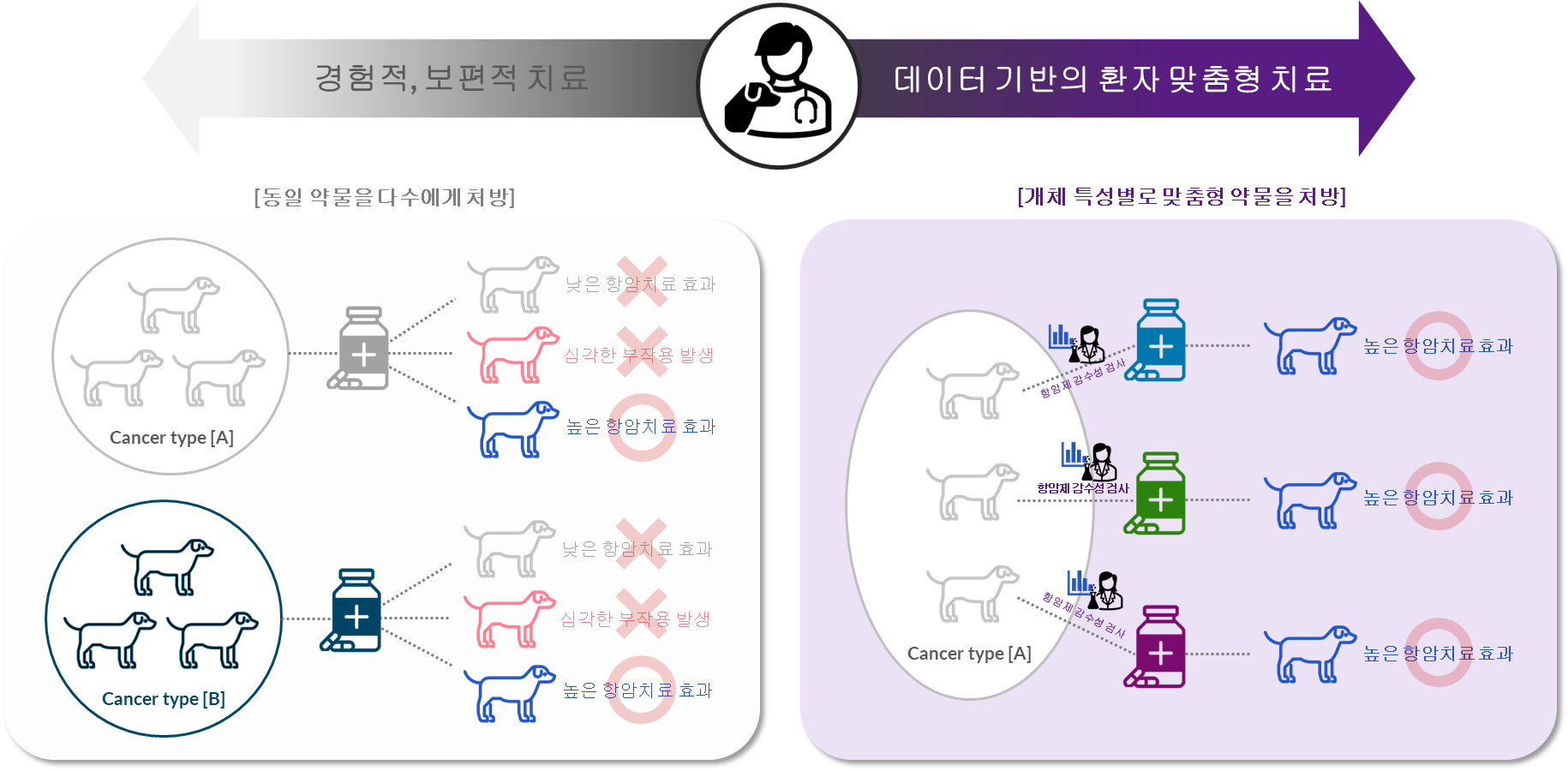 - 반려동물 암 치료에서 환자 개체 특성에 맞는 항암제를 사용하는 것은 생존율과 직결될만큼 중요한 부분입니다.